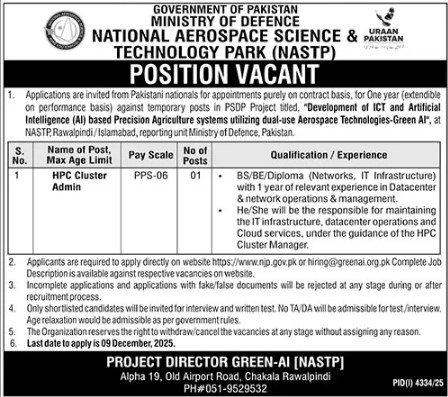Candidates, if you are seeking Ministry of Defence Latest Jobs 2025 In Rawalpindi, Apply Online yes. Then it would help if you tried to complete the Ministry of Defence Latest Jobs, because here you can easily apply for this vacancy: HPS Cluster Admin.